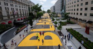 Bà Muriel Bower, thị trưởng thành phố thủ đô Washington, D.C., đã sơn khẩu hiệu