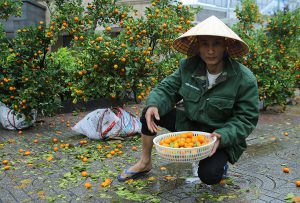 Nhìn hàng chục gốc quất đổ nghiêng ngả, quả rụng lả tả sau trận mưa