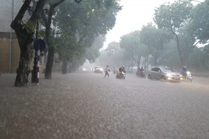 Phố quanh Hồ Gươm ngập sâu sau mưa lớn