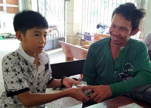 Hồ Thế Thuận, học lớp 5 ở huyện Châu Phú, nhặt được túi xách có