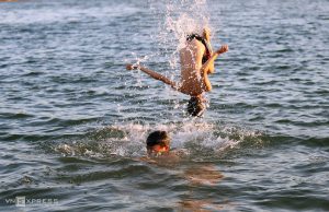 Nắng nóng hơn 40 độ C, nhiều người dân đổ lên hồ Kẻ Gỗ ở
