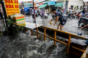 Người Sài Gòn lội nước về nhà sau mưa lớn