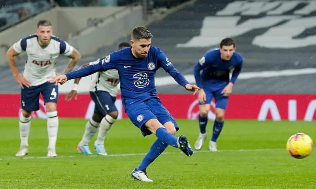 Eric Dier được coi là trò cưng của Mourinho, nhưng anh sẽ phải giải thích cho thầy với pha vào bóng khó hiểu dẫn tới phạt đền. Phút 23, Dier ngã xuống khi tranh chấp với Timo Werner trong cấm địa, nhưng vẫn khều chân với lấy bóng. Werner nhanh hơn và cướp được bóng, và bị Dier đạp trúng chân. Trọng tài Andre Marriner thổi phạt đền ngay. Jorginho không đá 11m theo kiểu nhảy chân sáo quen thuộc, mà sút ngay về góc thấp bên trái. Thủ môn Hugo Lloris thấy hướng sút mới phản xạ, đã quá muộn.