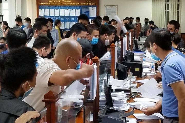 “Ai cũng mong thủ tục xin cấp phép được hoàn thiện trước ngày 11/4, nên không để ý đến việc giữ khoảng cách an toàn, phòng tránh dịch bệnh”, một người dân nói.