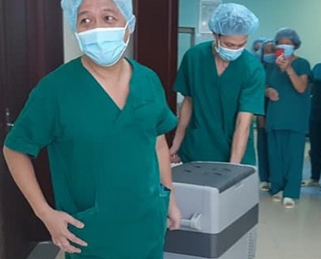 Ê kíp phẫu thuật vận chuyển tạng hiến tại Bệnh viện Bà Rịa. Ảnh: Trung tâm điều phối ghép tạng Quốc gia.