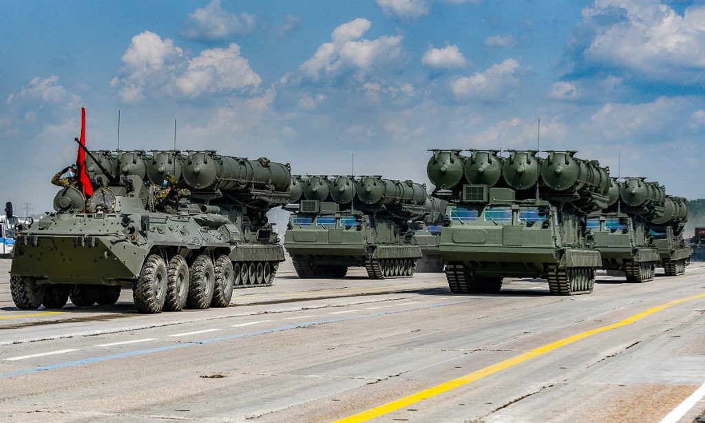 Xe thiết giáp BTR-82A dẫn đội khối xe chở đạn kiêm bệ phóng của hệ thống phòng không tầm xa S-300V4. Đây là tổ hợp lá chắn tên lửa đạn đạo (ABM) dành cho lục quân được Nga biên chế từ năm 2013. Nó phát triển trên nền tảng hệ thống S-300VM “Antey-2500”, được thiết kế tối ưu cho nhiệm vụ đánh chặn tên lửa đạn đạo tầm ngắn và tầm trung.