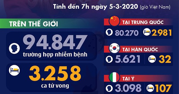 Hãng tin Reuters dẫn số liệu Cơ quan Bảo vệ Dân sự nước này cho biết, tính đến cuối ngày 4-3,  tổng số ca dương tính với COVID-19 tại Italy là 3.089 trường hợp, tăng mạnh so với 2.502 trường hợp tính đến ngày 3-3. Số ca tử vong ở nước này là 107 người, tăng 28 trường hợp.