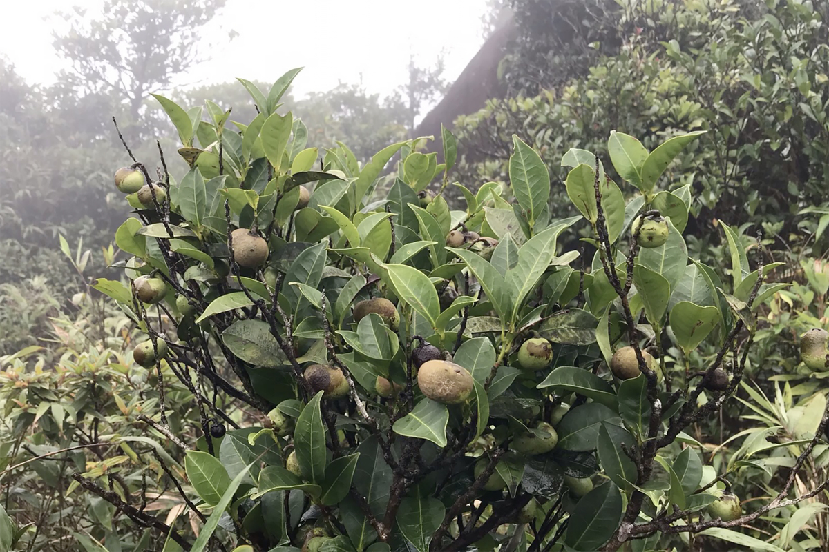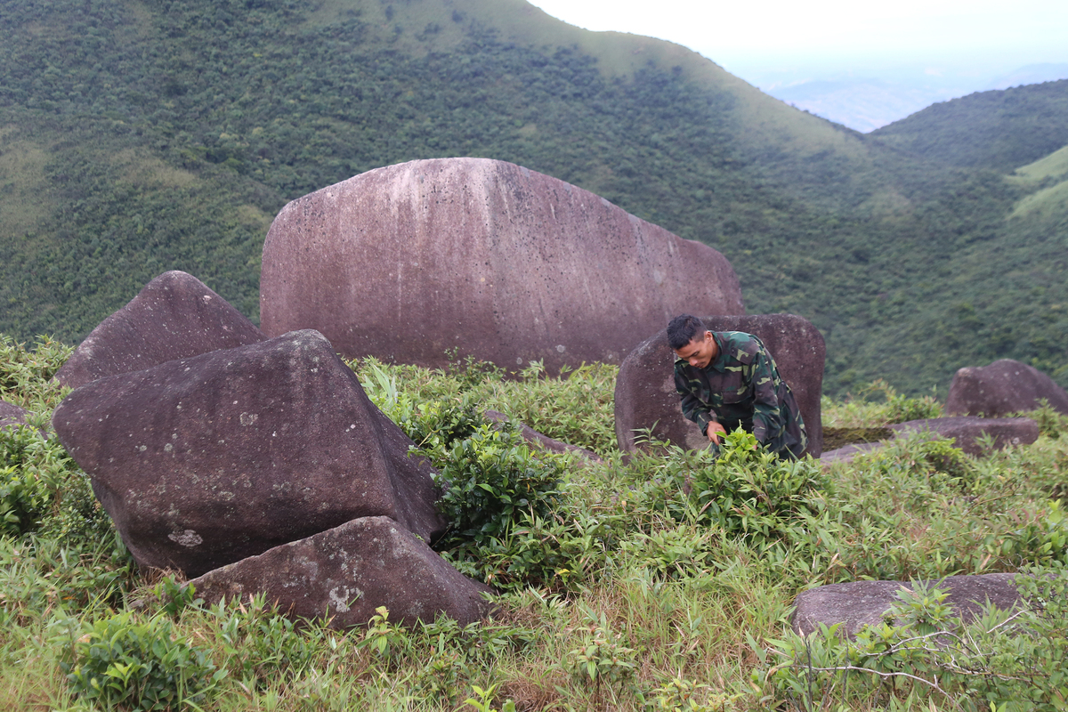 Trên đỉnh Pa Thiên, rất nhiều cây chè hoang mọc xen với trúc và các tảng đá. Anh Hồ Văn Xuôn, 26 tuổi, một trong những người dẫn đường cho đoàn đang hái lá chè để về bãi cắm trại nấu uống.
