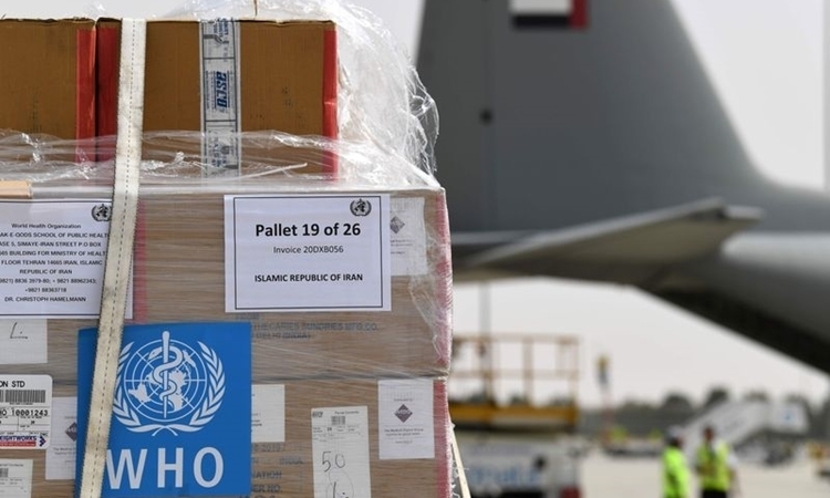 Lô hàng hỗ trợ được UAE đưa sang Iran hồi tháng ba. Ảnh: AFP.