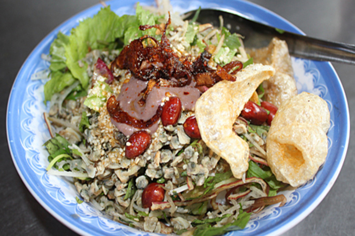 Bạn có thể thưởng thức ở quán Thúy, 16 Phạm Hồng Thái, quán Bà Đỏ số 8 Nguyễn Bỉnh Khiêm. Các quán này còn thường bán kèm bánh bột lọc, bánh khoái, bánh bèo hoặc nem nướng.