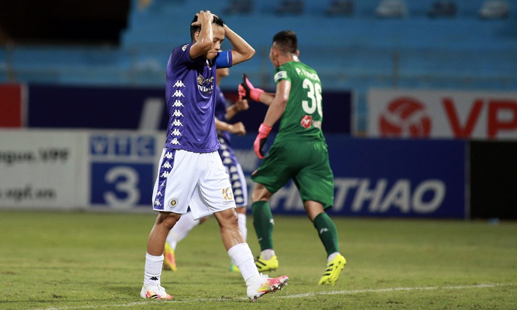12 ngày trước, Hà Nội lần đầu thua sân nhà sau gần ba năm bởi cú sút xa thành bàn của Đặng Văn Lắm (SLNA). Tối 30/6, thầy trò Chu Đình Nghiêm một lần nữa thất bại trên sân nhà theo kịch bản tương tự. Vẫn bằng một cú sút xa, Geovane găm trái bóng vào góc xa khung thành Văn Công, khiến thủ môn đội chủ nhà chỉ biết chôn chân đứng nhìn.