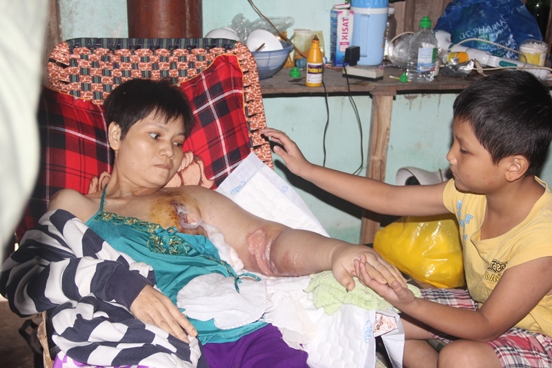 “Biết là về đây sẽ trở thành gánh nặng cho cha và chị gái nhưng tôi không còn cách nào khác. Giờ sợ nhất là mình chết đi, Thái sẽ bơ vơ. Cứ mỗi lần nghĩ đến con là tôi sợ không muốn chết, nhưng đau lắm chị ơi. Lở loét không ngủ được, cũng không có tiền mua thuốc giảm đau. Bất lực lắm!”, người phụ nữ bất hạnh thốt lên.