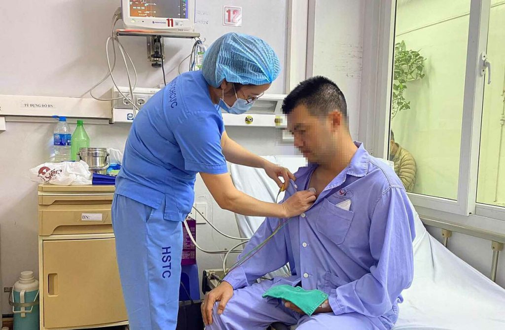 Anh được người nhà đưa vào Bệnh viện Thanh Nhàn cấp cứu tuần trước, bác sĩ chẩn đoán là nhồi máu cơ tim cấp. Khoảng 10 phút sau, anh rơi vào hôn mê sâu, ngưng tim.