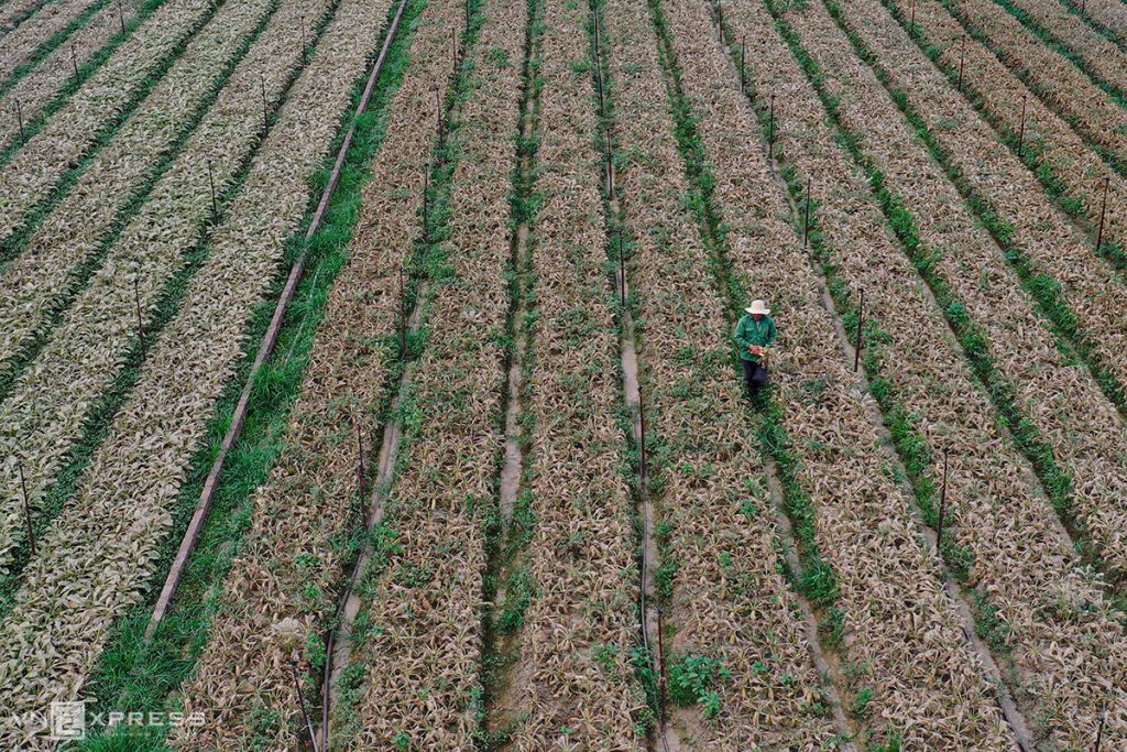 Cánh đồng củ cải bạc trắng vì sâu ở thôn Đông Cao, xã Tráng Việt, huyện Mê Linh. Ảnh: Ngọc Thành