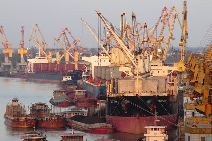 Bốc xếp hàng hóa từ tàu biển quốc tế tại cảng Hải Phòng. Ảnh: Giang Chinh
