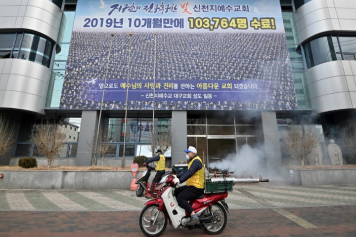 Daegu và tỉnh Bắc Gyeongsang là hai cụm dịch lớn ở Hàn Quốc với tổng số ca nhiễm hiện lần lượt là 1.314 và 394. Nhiều nhà thờ Thiên chúa giáo lớn buộc phải tạm dừng các sự kiện vào cuối tuần này hoặc tổ chức các buổi lễ trực tuyến.