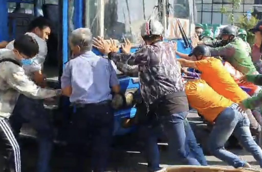 Người phụ nữ và xe máy bị ôtô buýt cuốn vào gầm, kéo lê khoảng 10 m. Khi xe dừng, chị Nguyệt bất tỉnh, bị bánh ôtô cán lên tay trái. Do xe buýt bị kẹt phanh không thể di chuyển, tài xế Cường cùng hàng chục người đã hô hào đẩy ôtô lùi lại để cứu nạn nhân.