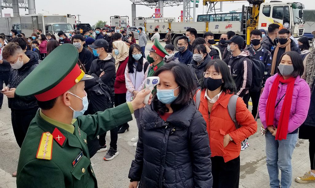 Tại chốt kiểm dịch thuộc địa phận Hải Phòng, tất cả phương tiện được yêu cầu dừng lại. Mọi hành khách xuống xe, xếp hàng làm thủ tục trình báo giấy tờ tùy thân. Một hàng rào bằng sắt được dựng lên để giữ khoảng cách giữa lực lượng làm nhiệm vụ và đoàn người về quê.