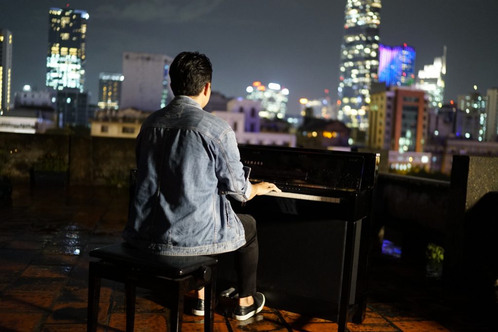 Andiez tuy không trực tiếp tham gia diễn xuất nhưng cũng góp mặt vào MV bên cây đàn.