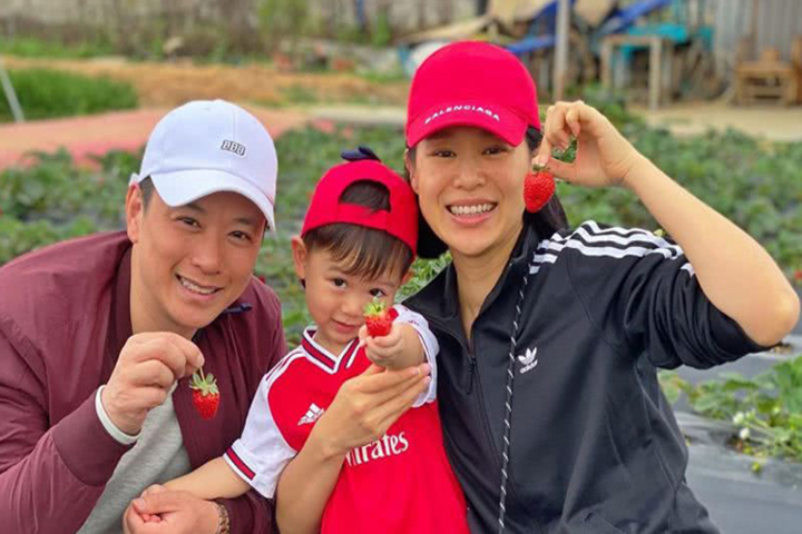 Vợ chồng diễn viên Hồ Hạnh Nhi đưa con trai cả tham quan nông trại hữu cơ ở Hong Kong, hôm 8/3.
