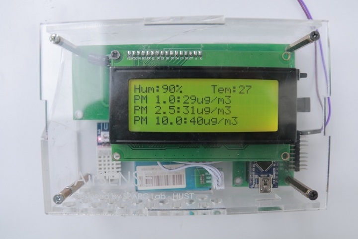 Thiết bị của nhóm có thể đo được nhiệt độ, độ ẩm và nồng độ ba loại bụi mịn PM 1.0, 2.5 và 10.0 tại vị trí đặt máy, cho ra kết quả chỉ sau vài giây.