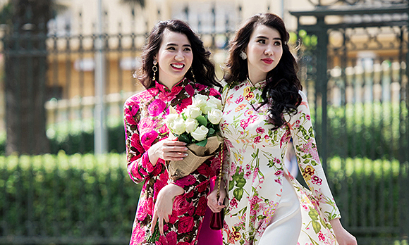 Chị em người mẫu song sinh Huyền Thư – Thư Huyền tái xuất, làm người mẫu cho bộ sưu tập áo dài của nhà thiết kế Kenny Thái.