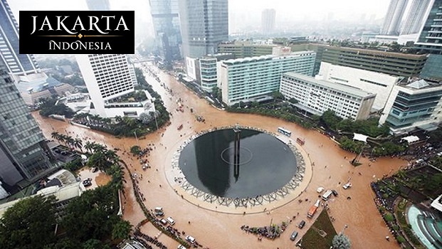 Theo Diễn đàn Kinh tế Thế giới, Jakarta còn là một trong những thành phố đang bị chìm dưới mực nước biển với tốc độ nhanh nhất thế giới. Các nhà nghiên cứu cho biết phần lớn siêu đô thị này có thể bị nhấn chìm hoàn toàn vào năm 2050. Khu vực Bắc Jakarta đã chìm 2,5 mét trong 10 năm và đang tiếp tục ngập thêm trung bình 1-15 cm mỗi năm. Ước tính, hiện có khoảng một nửa diện tích Jakarta đang nằm dưới mực nước biển. Một trong những nguyên nhân chính gây ra việc sụt lún này là việc hút nguồn nước ngầm không kiểm soát để làm nước uống và sử dụng trong đời sống sinh hoạt đã gây ra tình trạng trên.