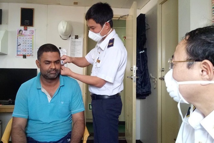 Một người nước ngoài làm việc ở cảng Vũng Áng, thị xã Kỳ Anh, Hà Tĩnh được đo thân nhiệt trước khi nhập cảnh. Ảnh: CDC
