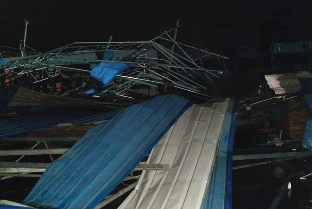 Mái tôn nhà xưởng đổ sập, tạo tiếng động mạnh. Hàng nghìn mảnh gỗ, mảnh tôn bị xới tung, bay lên cao vài chục mét rồi rơi rào rào xuống đất. Khoảng 100 lao động đang làm việc bên dưới hoảng loạn kêu khóc giữa tiếng mưa giông, sấm sét.
