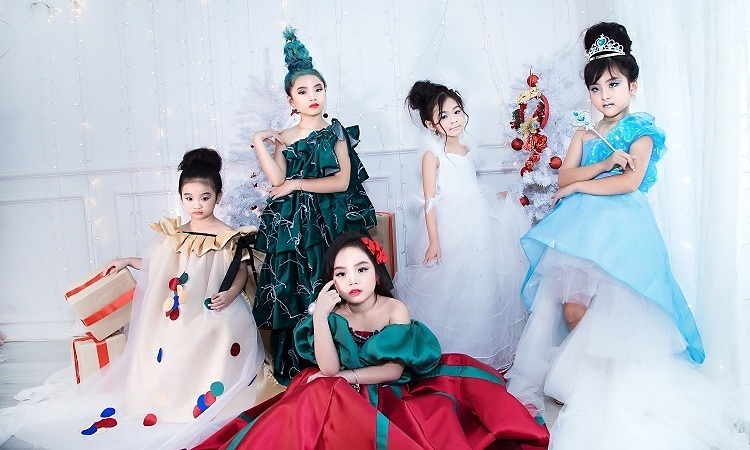 Dàn mẫu nhí Starkids diện những bộ đầm công chúa bắt nguồn cảm hứng từ vẻ đẹp tự nhiên của mùa Giáng sinh.