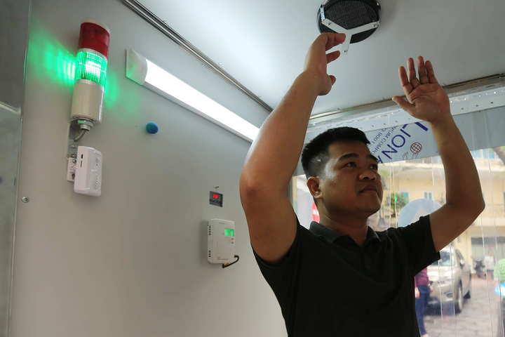 Mỗi modul để một người đi qua trong vòng 30 giây khi báo đèn xanh là khử khuẩn đã hoàn thành. Mỗi chiếc buồng sản xuất đơn giản, không tốn kém. Hệ thống điện, và nước ion do Đại học Bách khoa Hà Nội nghiên cứu thiết kế sản xuất.