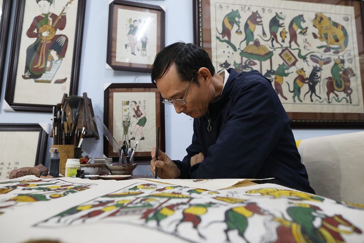 Với những tranh phối màu đậm – nhạt, không thể in ván, hoặc những tranh đặt làm khổ lớn, nghệ nhân phải tự mài mực vẽ thủ công.