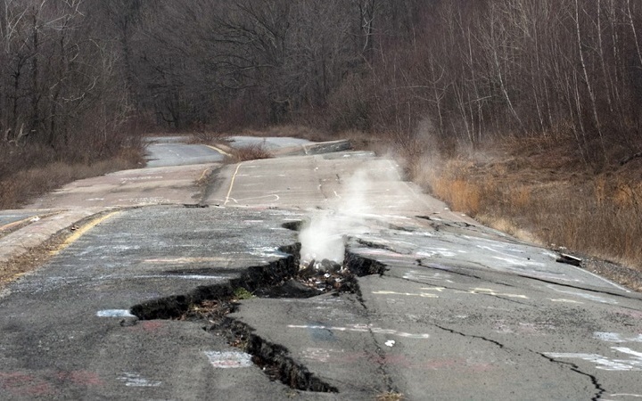 Ngọn lửa đốt để phát quang bãi rác lan tới các đường hầm của mỏ than đá bên dưới thị trấn Centralia và cháy mãi bất chấp nhiều nỗ lực dập tắt.