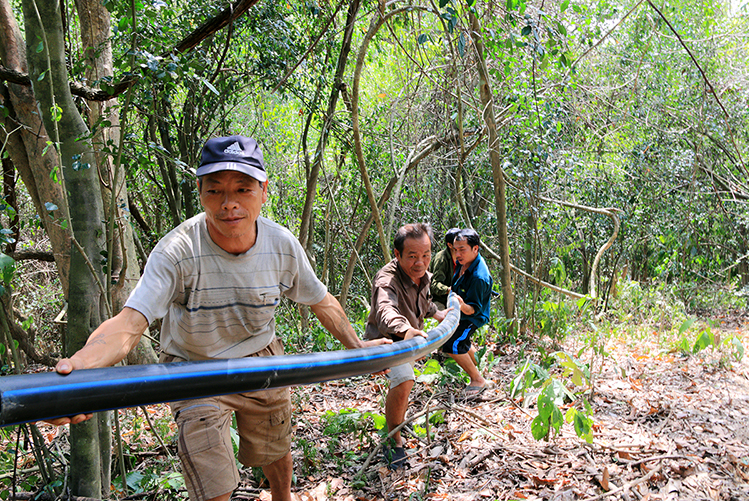 Với khoản kinh phí trên 200 triệu đồng, người dân mua 4.000 mét đường ống bằng cao su đường kính 10 cm; hơn 10 tấn xi măng, nhiều tấn sắt để xây bể bê tông có sức chứa khoảng 50 khối.
