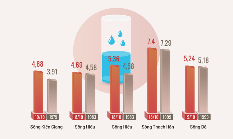 Đỉnh lũ cao nhất trên sông Kiến Giang (huyện Lệ Thủy, Quảng Bình) năm 1979 là 3,91 m, nhưng ngày 19/10/2020 đã lên 4,88 m, gây ngập lụt kéo dài.