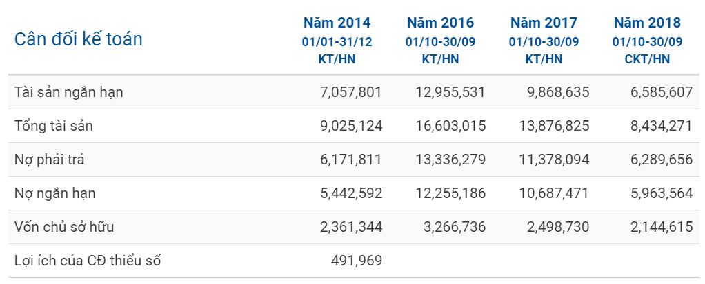 Cụ thể, tính đến cuối niên độ 2017-2018, nợ phải trả của công ty dù giảm 44,7% so với đầu năm, nhưng vẫn còn đến 6.289,7 tỷ đồng, tương đương 74,6% tổng tài sản và gấp 3 lần vốn chủ sở hữu. Trong đó, có 2.940 tỷ đồng là các khoản nợ vay ngắn hạn và 318,6 tỷ đồng nợ vay dài hạn.