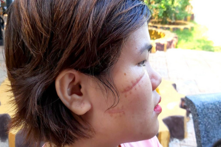 Chị Hồng (ở xã Bầu Chinh, huyện Châu Đức) được đồng nghiệp đưa đến bệnh viện khâu 25 mũi, trong đó một vết rạch từ trán bên phải lẹm mé mắt xuống má kéo ra phía sau tai trái. Sau một tháng điều trị, vết thương đã lành nhưng để lại sẹo hằn trên mặt nữ công nhân, thương tích 12%.