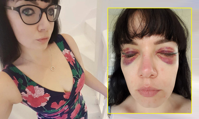 Sau khi thực hiện thủ thuật làm đẹp, mắt người phụ thâm tím.