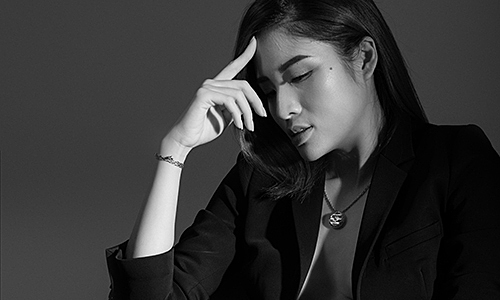 Suit tối màu còn được Phan Hoàng Thu kết hợp với bra-top ren đồng điệu vẻ gợi cảm.