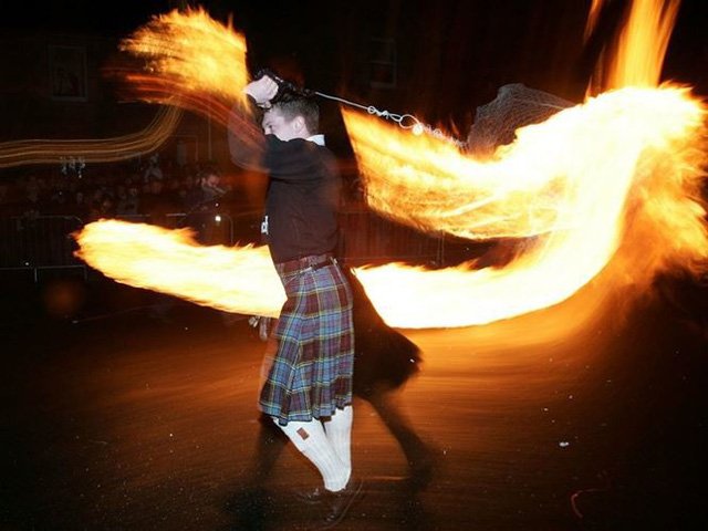 Scotland sử dụng những quả cầu lửa lớn trong lễ hội Hogmanay vào đêm Giao thừa để xua đuổi ma quỷ