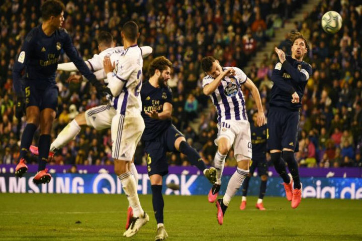 Real sớm gây sức ép về phía khung thành Valladolid. Phút thứ 10, đội chủ nhà may mắn thoát thua khi Casemiro đánh đầu cận thành tung lưới thủ môn Jordi Masip. Nhưng VAR cho rằng tiền vệ người Brazil rơi vào thế việt vị khi chỉ đứng dưới nửa thân người so với hàng thủ Valladolid.