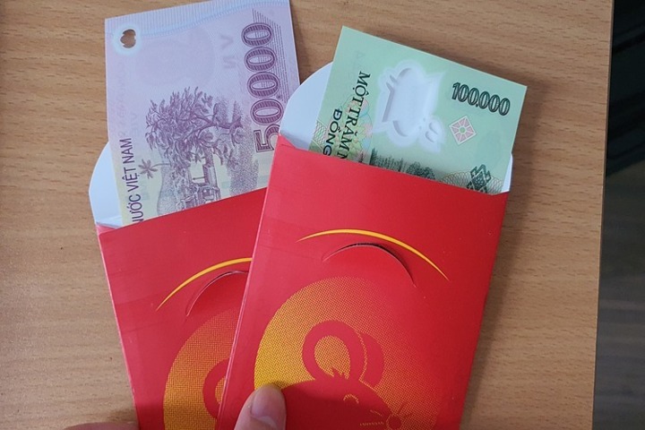 Khoe 2 phong bao lì xì với tổng giá trị 200.000 đồng, chị Nhung – một khách hàng đang giao dịch tại MSB cho biết, sáng giờ đây là ngân hàng thứ hai chị đến. Theo chị Nhung, được lì xì 50.000, 100.000 đồng, dù không quá nhiều nhưng vẫn thích vì chủ yếu để lấy lộc.