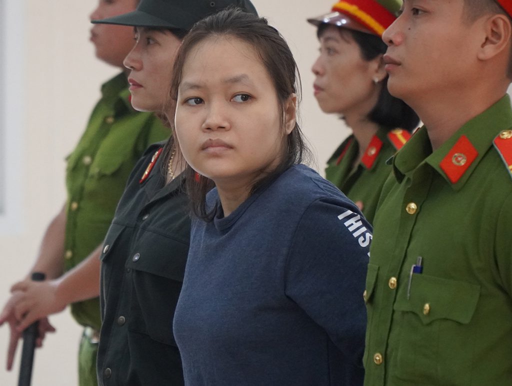 Thiên Hà cùng mẹ là Trịnh Thị Hồng Hoa, 67 tuổi, và hai đồng phạm Nguyễn Ngọc Tâm Huyên, 41 tuổi; Lê Ngọc Phương Thảo, 30 tuổi, bị xét xử về tội Giết người; Che giấu tội phạm; Không tố giác tội phạm.