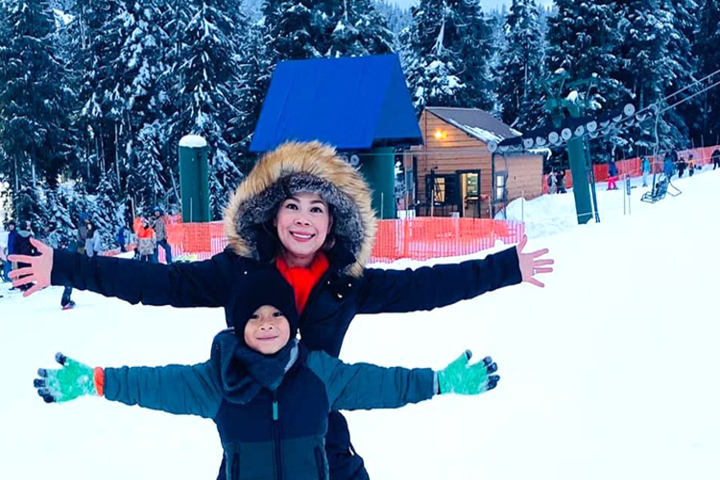 Thanh Thảo đưa con trai nuôi – bé Jacky Minh Trí – và mẹ ruột sang Canada đón Giáng sinh. Con ruột cô với bạn trai – Tom Han – ở Mỹ. “Jacky luôn mơ ước được nghịch tuyết. Nhân sinh nhật bé tròn chín tuổi, tôi tặng con món quà là chuyến đi chơi”, ca sĩ nói. Ảnh: T.T .