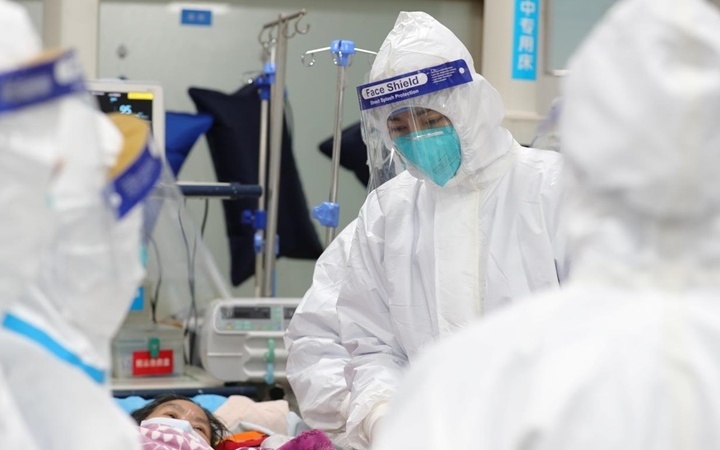Các bác sĩ ở Bệnh viện Trung ương Vũ Hán chăm sóc một bệnh nhân nhiễm viêm phổi cấp. Ảnh: Reuters.