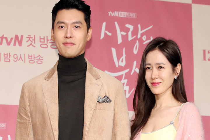 Son Ye Jin và Hyun Bin tại buổi họp báo phim Hạ cánh nơi anh. Ảnh: News.
