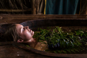 Tắm chậm theo thứ tự tay – chân – đầu, ngâm mình với lá neem,
