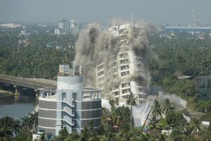 Hai chung cư cao cấp bên hồ ở bang Kerala bị đánh sập bằng thuốc