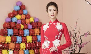 Áo dài đỏ lấy hên cho năm mới
