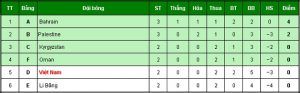Việt Nam xếp thứ năm ở nhóm tranh vé vớt sau hai lượt trận Asian Cup